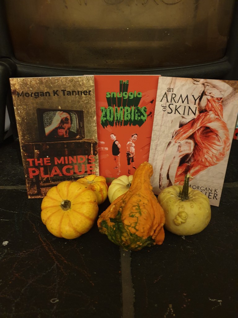 For this weekend, as a spooky pre-Halloween treat, my books An Army of Skin, The Mind’s Plague, and The Snuggle Zombies are all FREEEEEEE!!!!